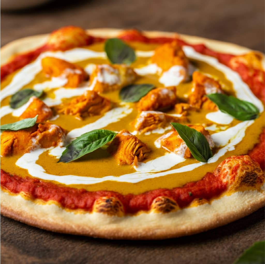 Tomato sauce, chicken, curry, fresh cream, cheese