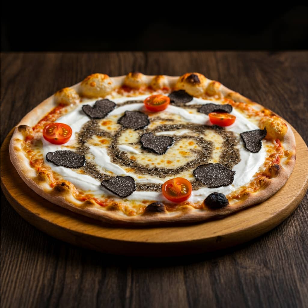 Fresh cream, truffle cream, cheese, tomato brunoise