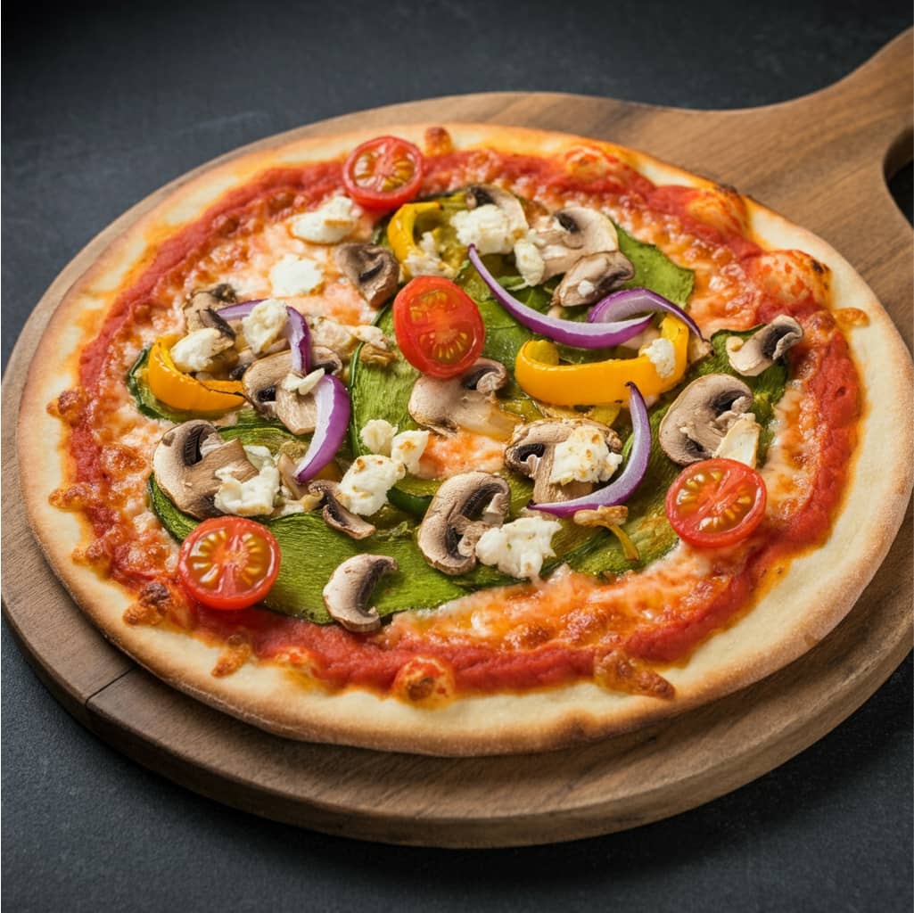 Tomato sauce, fresh goat cheese, seasonal vegetables, mushroom