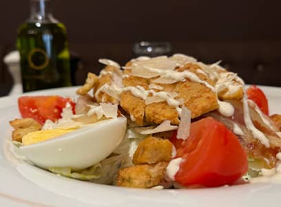 Crispy chicken, parmesan, smoked bacon, egg, tomato, crouton