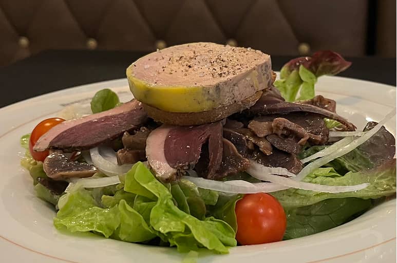 Foie gras, gizzard, dried duck breast, tomato, onion, radish